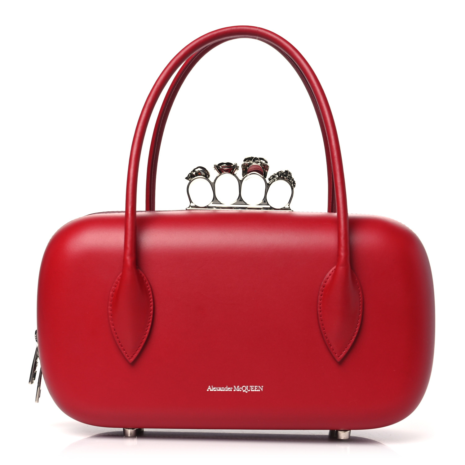 ゆき 「プロフ必読」✨美品✨Alexander McQueen Red ALEXANDER MCQUEEN Calfskin Reverse Top Handle Clutch Red
